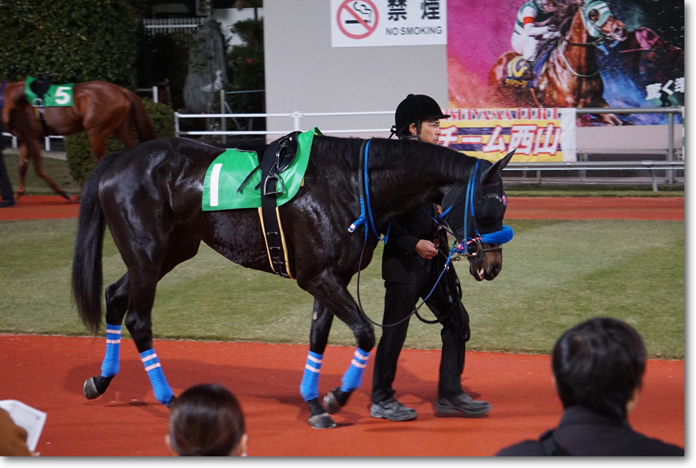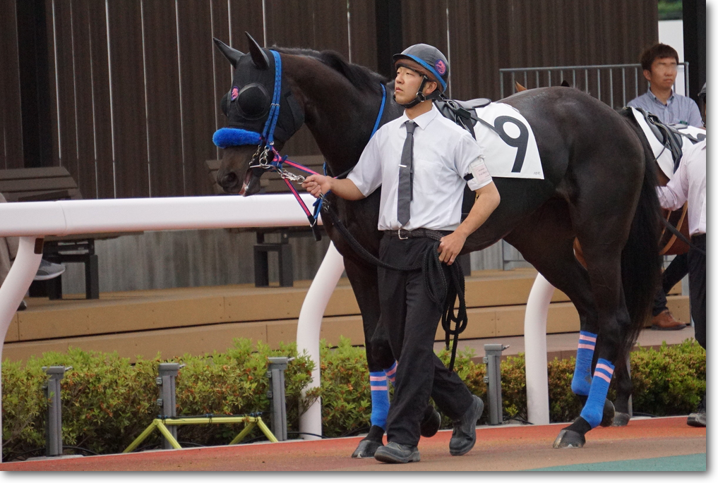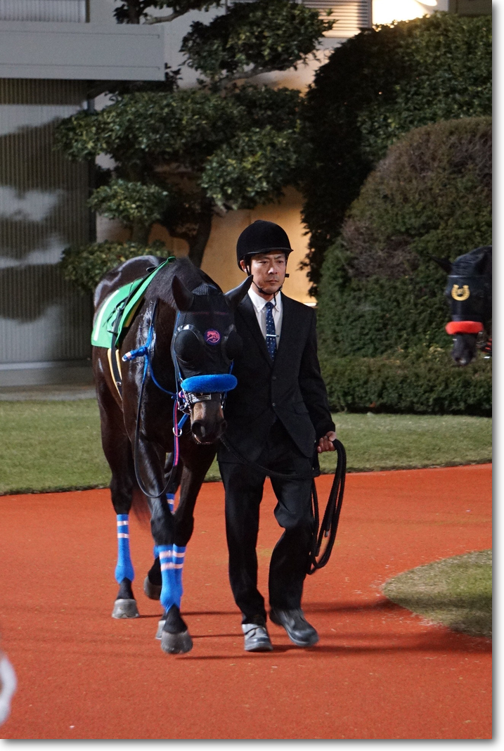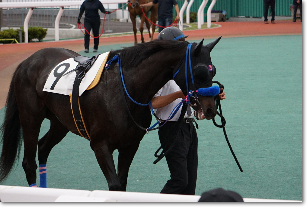 パドック周回時はなんとか我慢していられましたが、騎手が跨ってから本馬場への地下馬道ではかなり気が入ってしまいました。