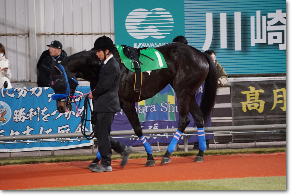本日牧場へ短期放牧に出し、今後は浦和、川崎などの交流レースを考慮に入れて調整していきます。