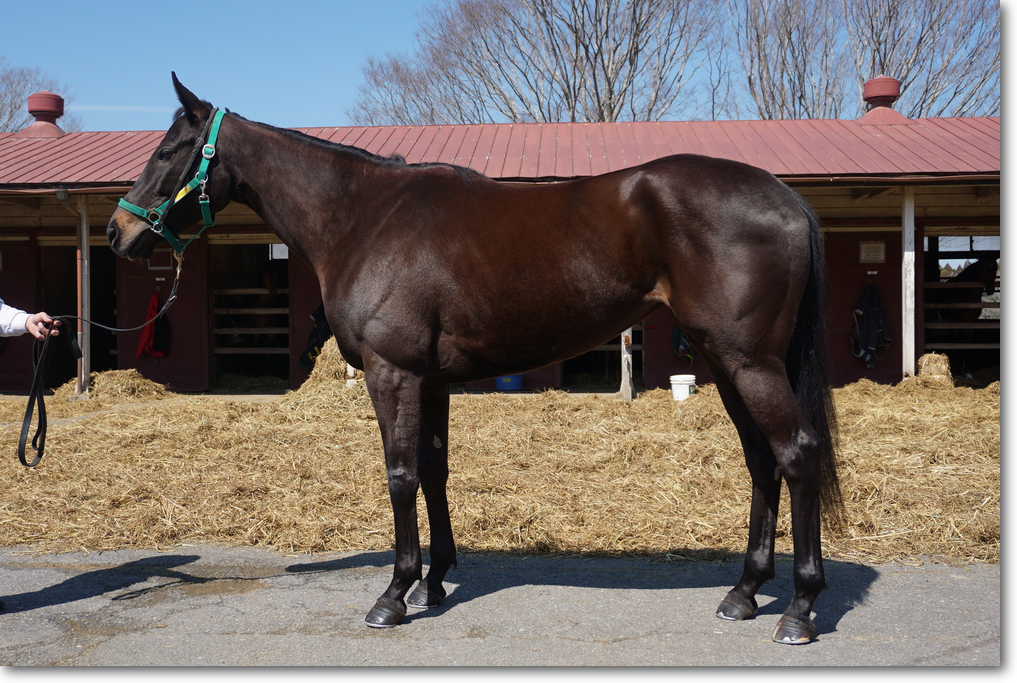 4月24日に牧場へと戻り、疲労回復のため少し楽をさせてから、現在は順調に乗り込んでおります。4歳となって馬体が完成し、バランスが良くなりました。気の強さは相変わらず持っていますが、以前よりも我慢が効くようになっています。